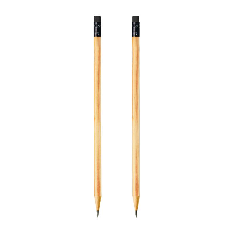 EcoLápis grafite com borracha, corpo natural fosco, guarnição e borracha preta, grafite número 2 (HB), ideal para escritas em geral.
